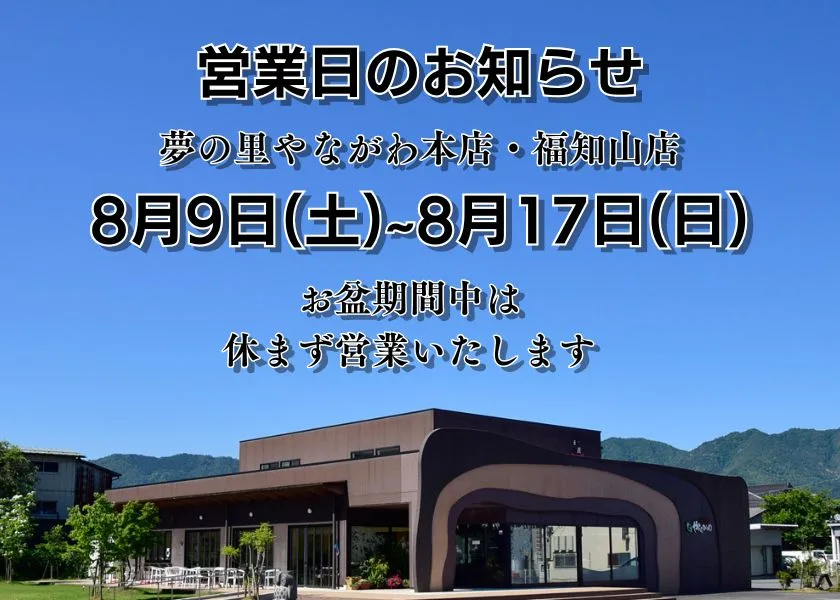 夢の里やながわ本店 営業時間変更のお知らせ