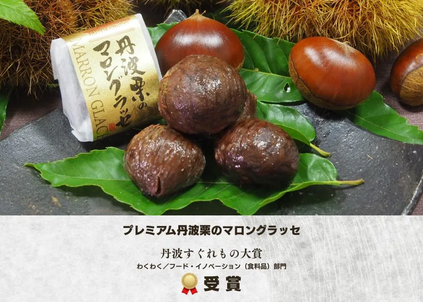 この度、令和7年度「丹波すぐれもの大賞-TAMBA INNOVATION AWARD-」が決定され、弊社が出品しました「プレミアム丹波栗のマロングラッセ」が、わくわく/フード・イノベーション(食料品)部門を受賞いたしました。